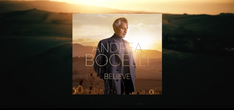 Screen capture from Andrea Bocelli – Believe – Official Album Trailer. WATCH IT HERE.