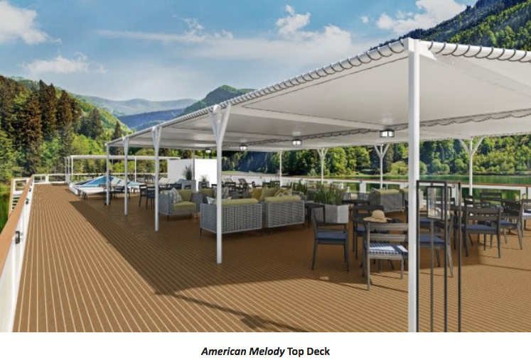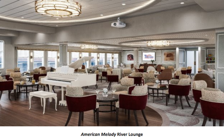 American Melody and her sister ships redefine American river cruising from a design and architecture point of view. The American Melody, and sister ship American Jazz (its predecessor that was completed in 2020 but delayed its cruising launch due to the pandemic) provide a fresh, modern experience as they cruise the Mississippi and Ohio Rivers beginning in the summer of 2021.